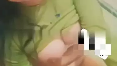 Desi girl in t shirt lifting and showing boobs on video chat